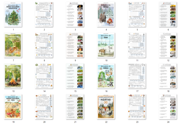 Darba lapas – LATVIEŠU GADSKĀRTAS. Katrai gadskārtai 3 lapas – 2 darba lapas un 1 puzle.