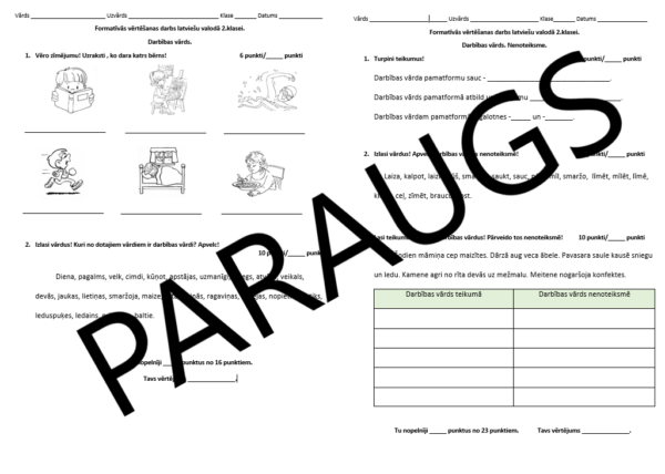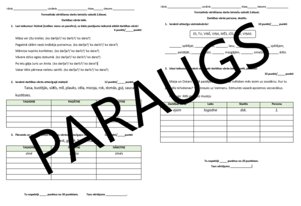 4 formatīvās vērtēšanas darbi (Darbības vārds. Darbības vārda pamatforma. Darbības vārda laiki. Darbības vārda persona, skaitlis.)