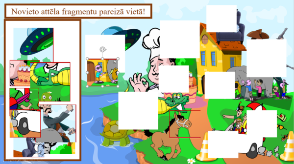 – 2 slaidi – novieto attēla fragmentu pareizā vietā.