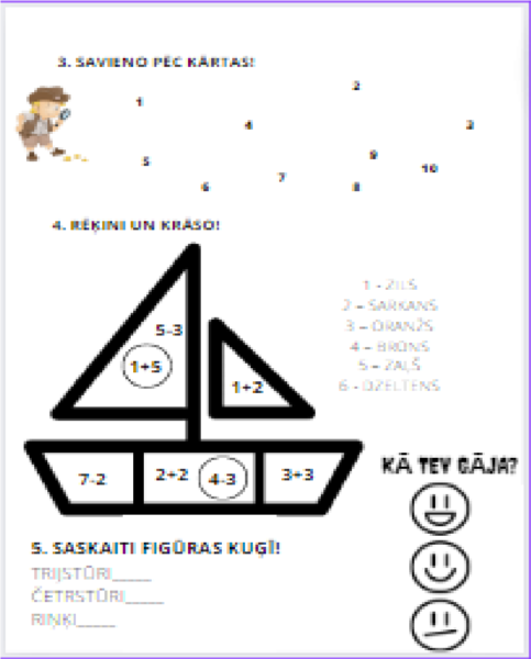 5. uzdevums- saskata un saskaita figūras attēlā (riņķis, trijstūris, četrstūris)