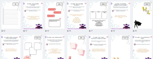 Krāsaini simboli, viegli uztverami uzdevumi, jautri vizuālie elementi un vieta zīmējumiem!
