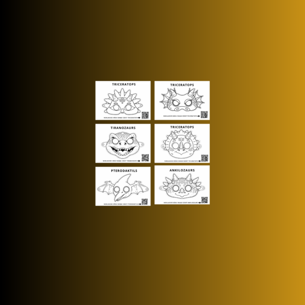 Melnbaltas dinozauru maskas – krāso, griez. Lieliski piemērotas pirmsskolas vecuma bērniem – attīsta radošumu, sīko motoriku un rosina iztēli.