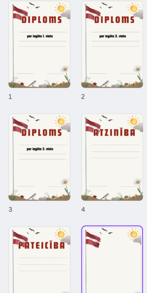 + links uz vietni Canvā, kur var rediģēt nokopēt un rediģēt diplomus.