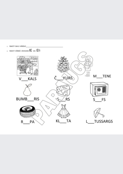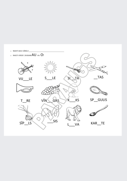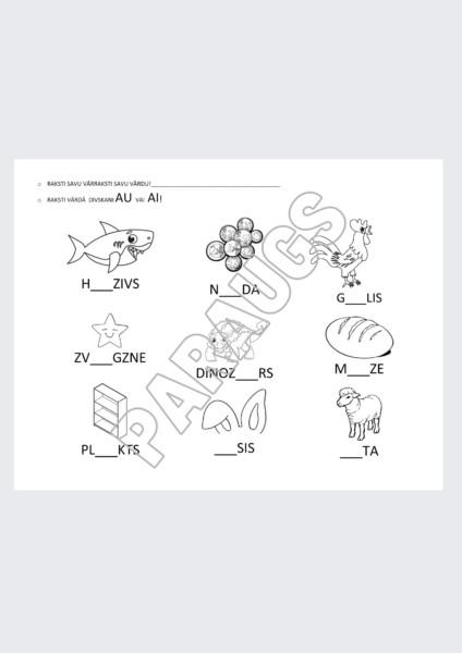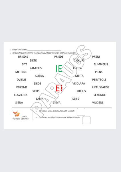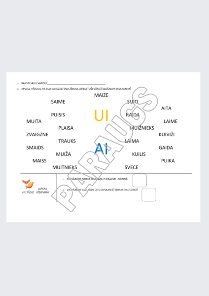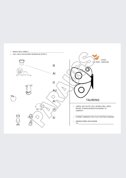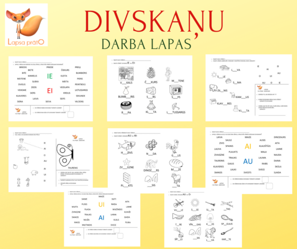 Darba lapas divskaņiem ei, ie, au, ai, ui, o (uo).