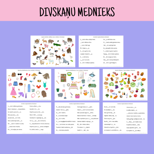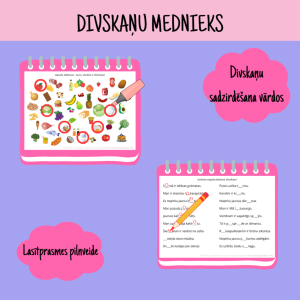 • Darba lapai nr.1. – Bērns apvelk vārdus, kuros sadzird divskaņus
