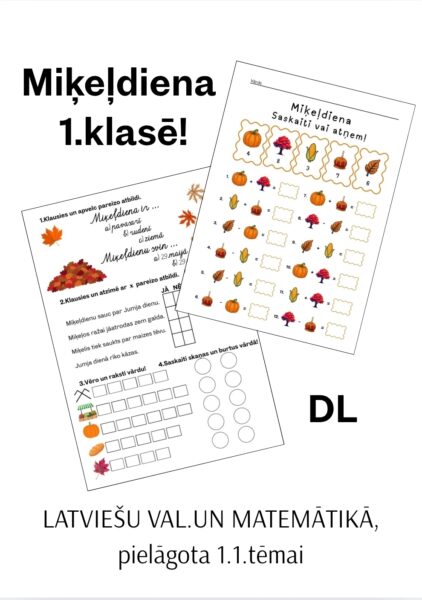 Materiālā 1 darba lapa,pielāgota 1.1. temata apguvei latviešu valodā un matemātikā. Iepazīsti Miķeļdienu un apgūsti tematu.