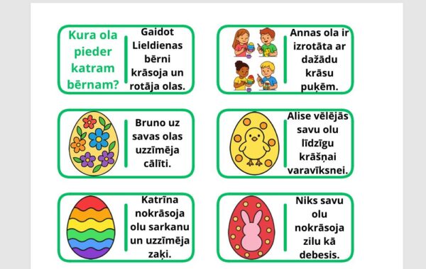 Viena spēle par dažādām Lieldienu olām, otra par Lieldienu tradīcijām, ticējumiem.