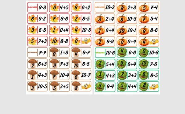 Domino “Saskaitām, atņemam 10 apjomā” (2.daļa)