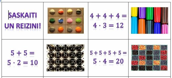 Vingrina prasmi saskatīt reizināšanas darbību apkārtējā vidē.