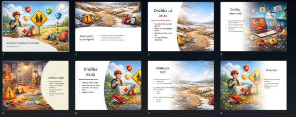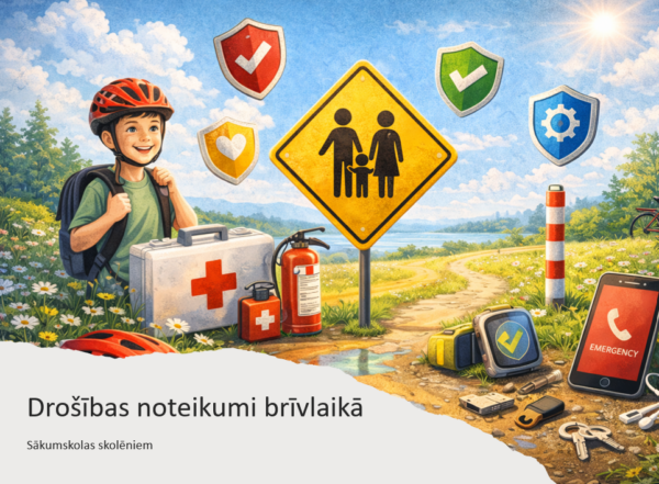 Prezentācija skaidro galvenos drošības principus skolēniem brīvlaikā, uzsverot personīgo atbildību un pārdomātu rīcību dažādās situācijās. Tajā aplūkota drošība uz ielas un sabiedriskās vietās, digitālajā vidē, mājās, kā arī sportojot un atpūšoties pie ūdens. Atsevišķi izskaidrota pareiza rīcība ārkārtas gadījumos un vienotā palīdzības numura 112 izmantošana. Noslēgumā iekļauti pārbaudes jautājumi zināšanu nostiprināšanai un secinājums, ka droša uzvedība palīdz izvairīties no riskiem un nodrošina drošu brīvlaiku.