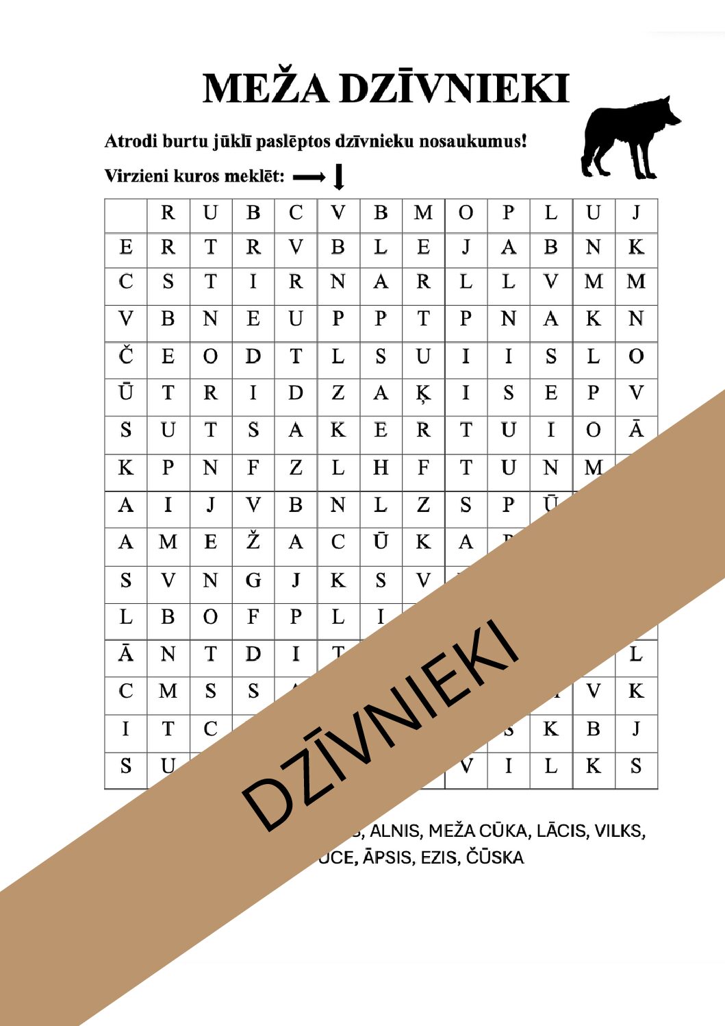 Šajā jūklī ir sajaukti dažādi dzīvnieku nosaukumi. Tas ir lielisks veids, kā spēlēt dzīvnieku tēmu, meklējot paslēptos vārdus.