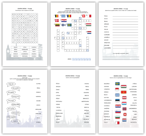 Vai meklē izglītojošu un aizraujošu materiālu Eiropas dienas atzīmēšanai? Šīs darba lapas ir lieliska izvēle! Tās palīdzēs skolēniem izzināt Eiropas valstis, kultūras un simbolus, vienlaikus attīstot valodas un loģiskās domāšanas prasmes.