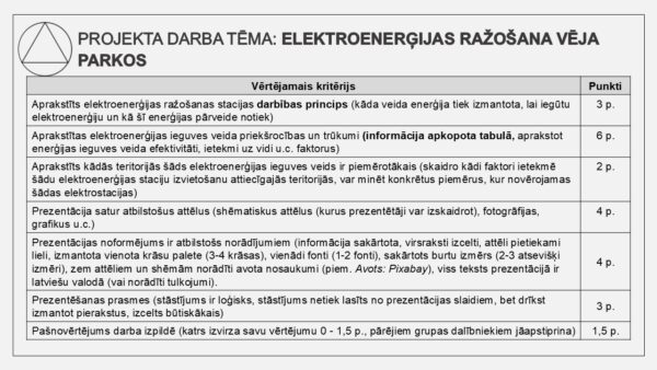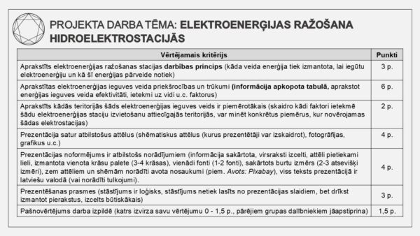 - skolēnu prezentāciju darbu sagataves ar kritērijiem prezentācijas izstrādei un vērtēšanai