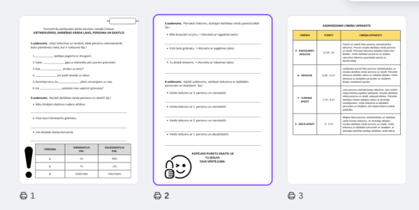 📖 Formatīvā pārbaude latviešu valodā 2. klasei – Personu vietniekvārdi un darbības vārda laiki!