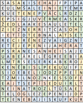 Vienā režģī var būt lieki burti. Viens burts var būt izmantots tikai vienu reizi. Nedrīkst savienot burtus pa diagonāli. Ir pievienotas atbildes.