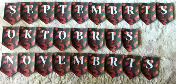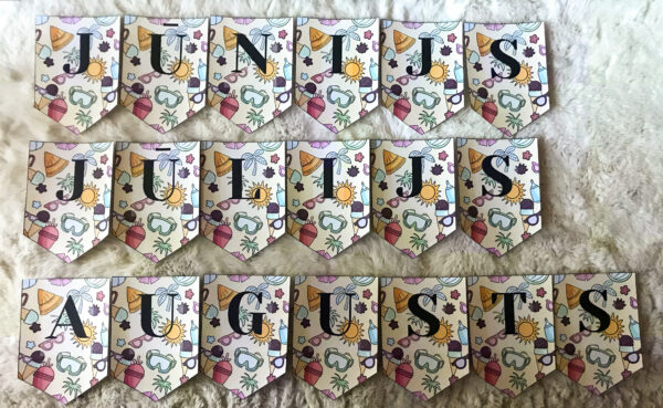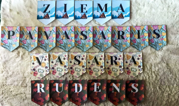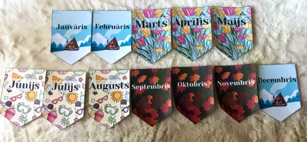 Mēnešu un gadalaiku karodziņi A5 izmērā. PDF fails ar 68 lpp. Komplektā: