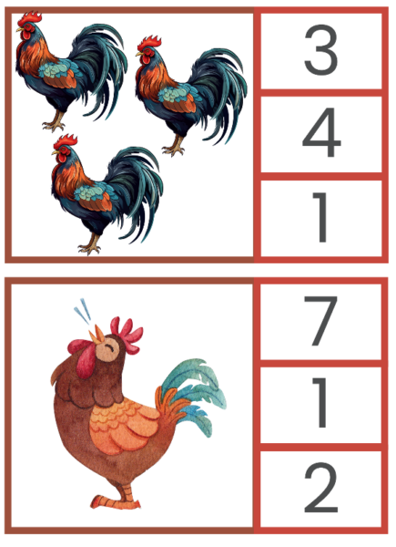 No 1-10 saskaiti gaiļus un piespraud atbilstošā skaita ciparam knaģi!