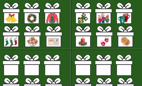 Gaismas galdam izmantojamas kartītes kā dāvanas, kurās ir attēli, kas saistīti ar Ziemassvētku gaidīšanas laiku un pašiem svētkiem.