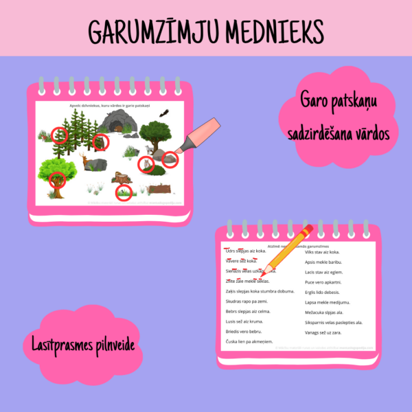 • Darba lapai nr.1. – Bērns apvelk vārdus, kuros sadzird garo patskani