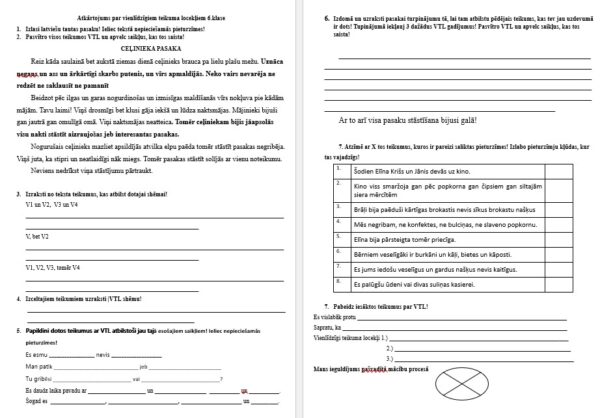 4. Papildini teikumus ar VTL atbilstoši dotajiem saikļiem.