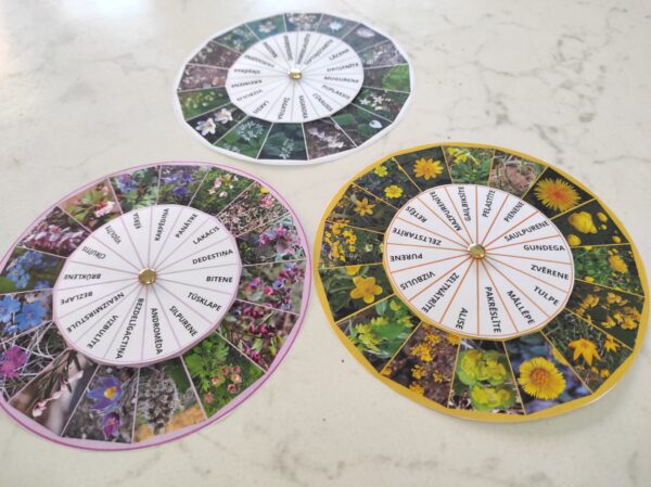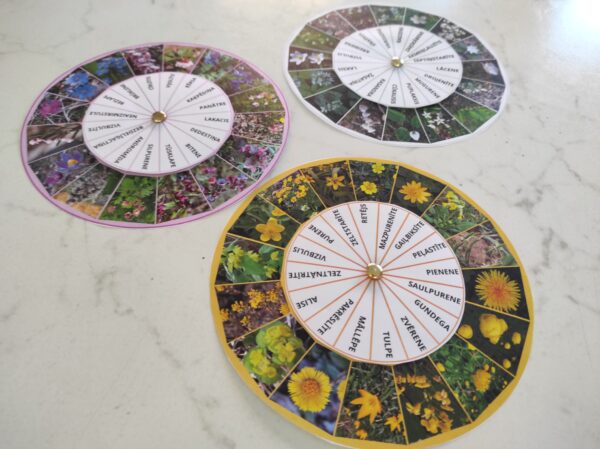 Grozāmie apļi “Pavasara augi” pa ziedu krāsām
