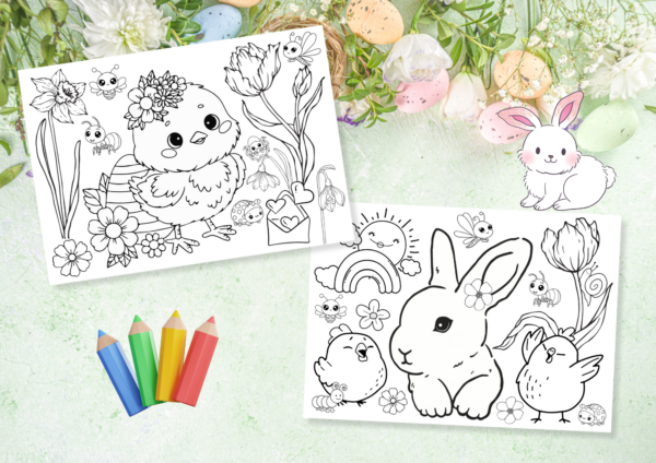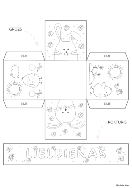 Papīra groziņš “Zaķēns” A4 un A3 formātā un divas A4 krāsojamās lapas Lieldienām.