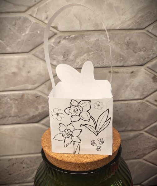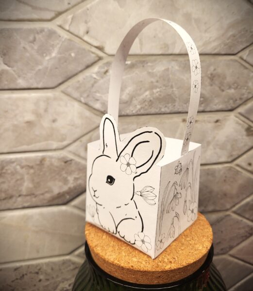 Izveido burvīgu un praktisku Lieldienu groziņu ar zaķēna dizainu! Šis groziņš ir lieliski piemērots olu, konfekšu vai citu mazu dāvaniņu ievietošanai.