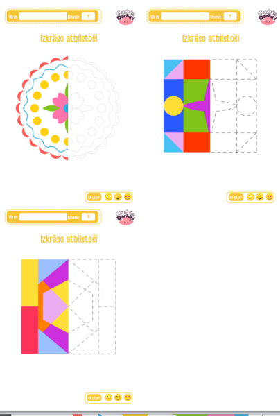 Darbiņš loģikas veicināšanai, patrenu ataršanai kā arī redzētā atveidošanai, atbilstošo krāsu piemeklēšanai.