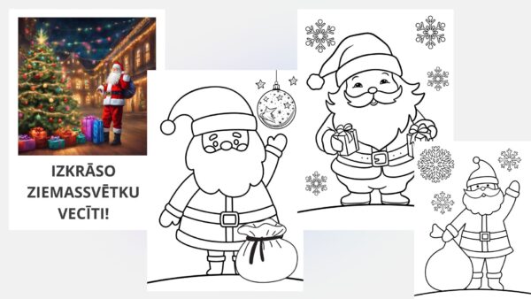 25 krāsojamās lapas, izkrāso Ziemassvētku vecīti.