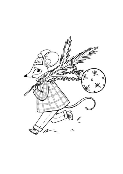 Krāsojamās lapas Decembra svētku atmosfērai. Zaķis, peles, kurmīši, jenots, ezītis un putniņš svin Ziemassvētkus. Viņi dekorē telpas, gatavo vakariņas, saiņo dāvanas, sagaida Ziemassvētku rītu.