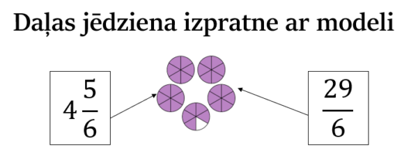 Jaukta skaitļa un neīstas daļas izpratne ar modeliJaukta skaitļa un neīstas daļas izpratne ar modeli