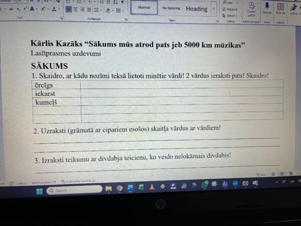 Darba lapā esmu ietvērusi ne tikai ar grāmatas tekstu saistītus uzdevumus, bet arī tādus, kas mudinās papētīt vairāk, kā arī formulēt savu attieksmi, viedokli.