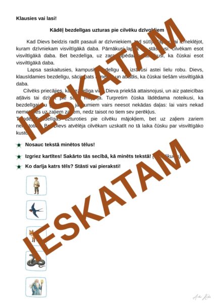 2. No pielikuma jāizgriež attēlu kartītes un jāsakārto, kā tie minēti tekstā.