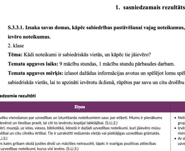 • Aprakstīts, ko skolēns apgūs temata beigās un ko stundās darīs.