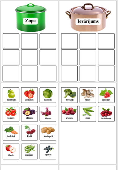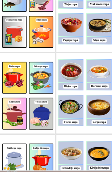 • bērni izlasa zupu nosaukumus un pieliek pie attiecīgās bļodiņas attēla,