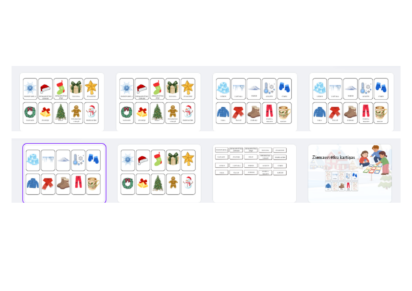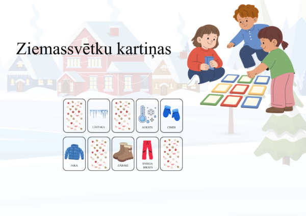 Bērns pārī savieno divas vienādas ziemas tēmas kārtītes.