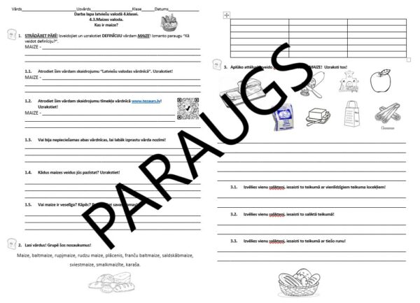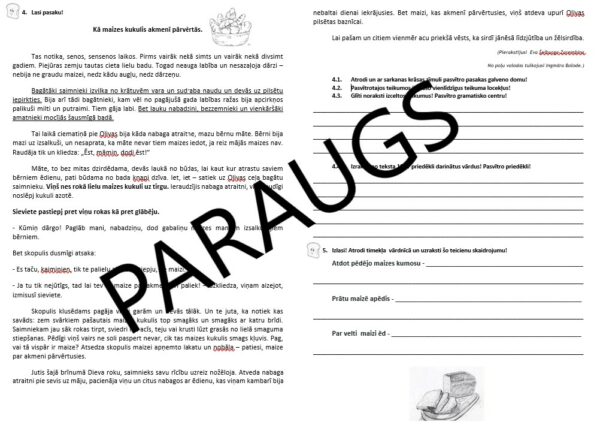 Maizes valoda. Kas ir maize? Darba lapa latviešu valodā 4.klasei.