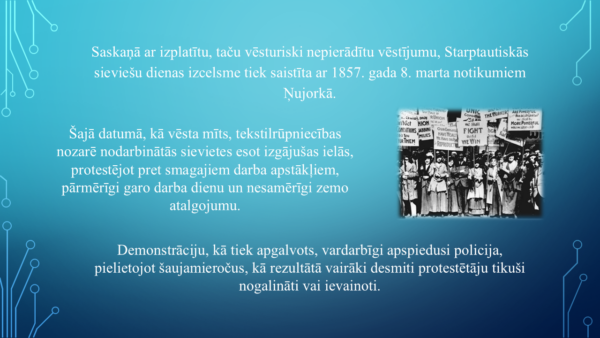 1. Rediģējama pptx mācību prezentācija ar Starptautiskās sieviešu dienu skaidrojumu un vērturisko skatījumum (17 slaidi).