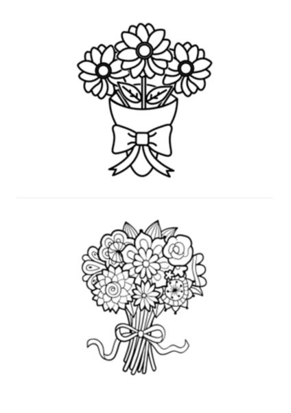 3. Ziedu krāsošanas lapas jaunāka vecuma bērniem (krāso) – 9 A4 (doc un pdf) formāta lapas, uz katras lapas 2 dažādi ziedu zīmējumi krāsošanai;