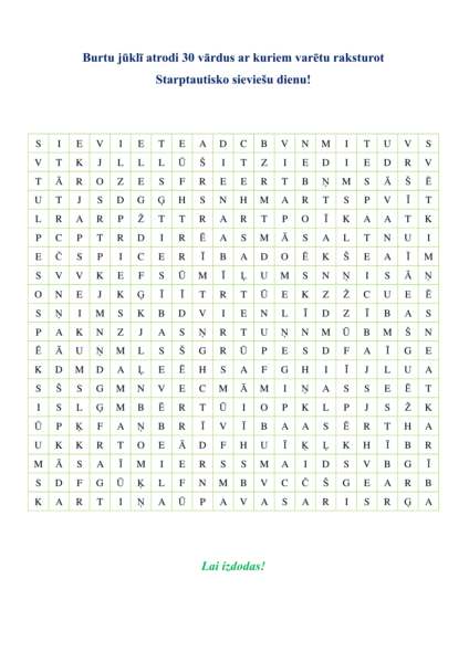 4. “Burtu jūklis” svētku raksturošanai (30 atslēgvārdi) – 1 A4 (doc un pdf) formāta lapas + 1 A4 atbilžu lapa.