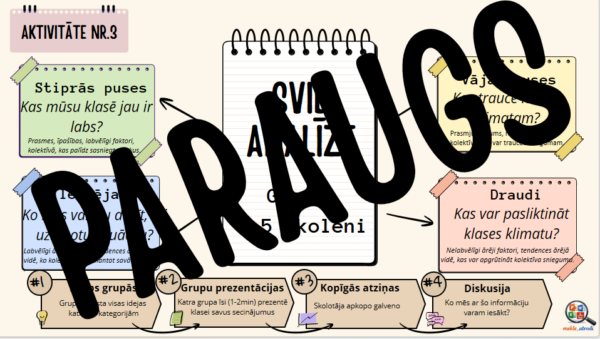 Stundas gaita ir skaidri strukturēta ar viegli pārskatāmu prezentāciju – nekas nav jāizdomā pašam. Atliek tikai atvērt prezentāciju, sakopēt pievienotos materiālus un novadīt stundas.