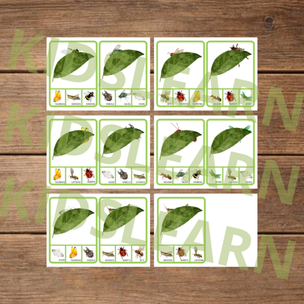 Spēle bērniem, kas attīsta uzmanību, domāšanu un roku veiklību. Bērniem jāatklāj, kāds kukainis paslēpies un jāpiestiprina knaģis pie pareizās atbildes.