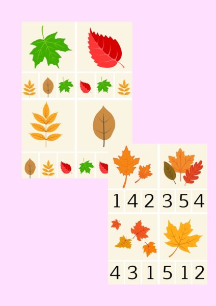 • 2 lapas – Spēle “Saskaiti lapiņas” (cipari 1–8) (kopā 8 kartiņas)