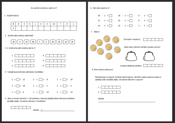 Ko nozīmē reizināt un dalīt ar 2? dl