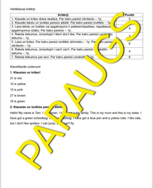 3 uzdevumu lapas, iekļauti vērtēšanas kritēriji