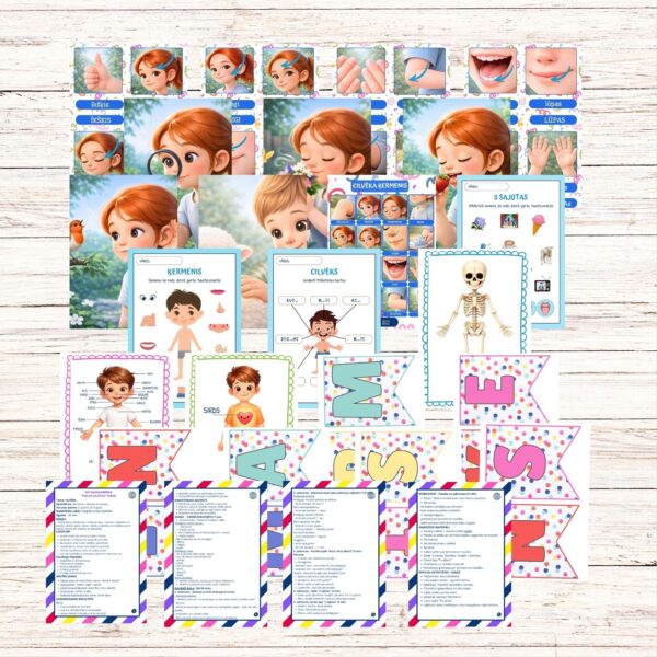 Materiāls veidots vizuāli pievilcīgā, bērniem drošā un mierīgā stilā, lai rosinātu sarunas, jautājumus un aktīvu līdzdalību. Tas lieliski noder gan ikdienas rotaļnodarbībās, gan tematiskajās nedēļās par cilvēku un ķermeni.