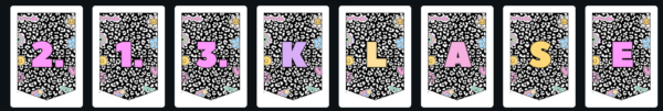 Šis materiāls paredzēts, lai radītu mājīgu un pozitīvu noskaņu jau pie klases durvīm. Tajā iekļauti krāsaini karodziņi un uzraksti, kas ļauj izveidot vizuāli pievilcīgu dekoru ar tekstiem: