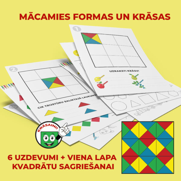 Apgūst formas un krāsas savstarpējās attiecības (piem., sarkans trijstūris, zils kvadrāts).