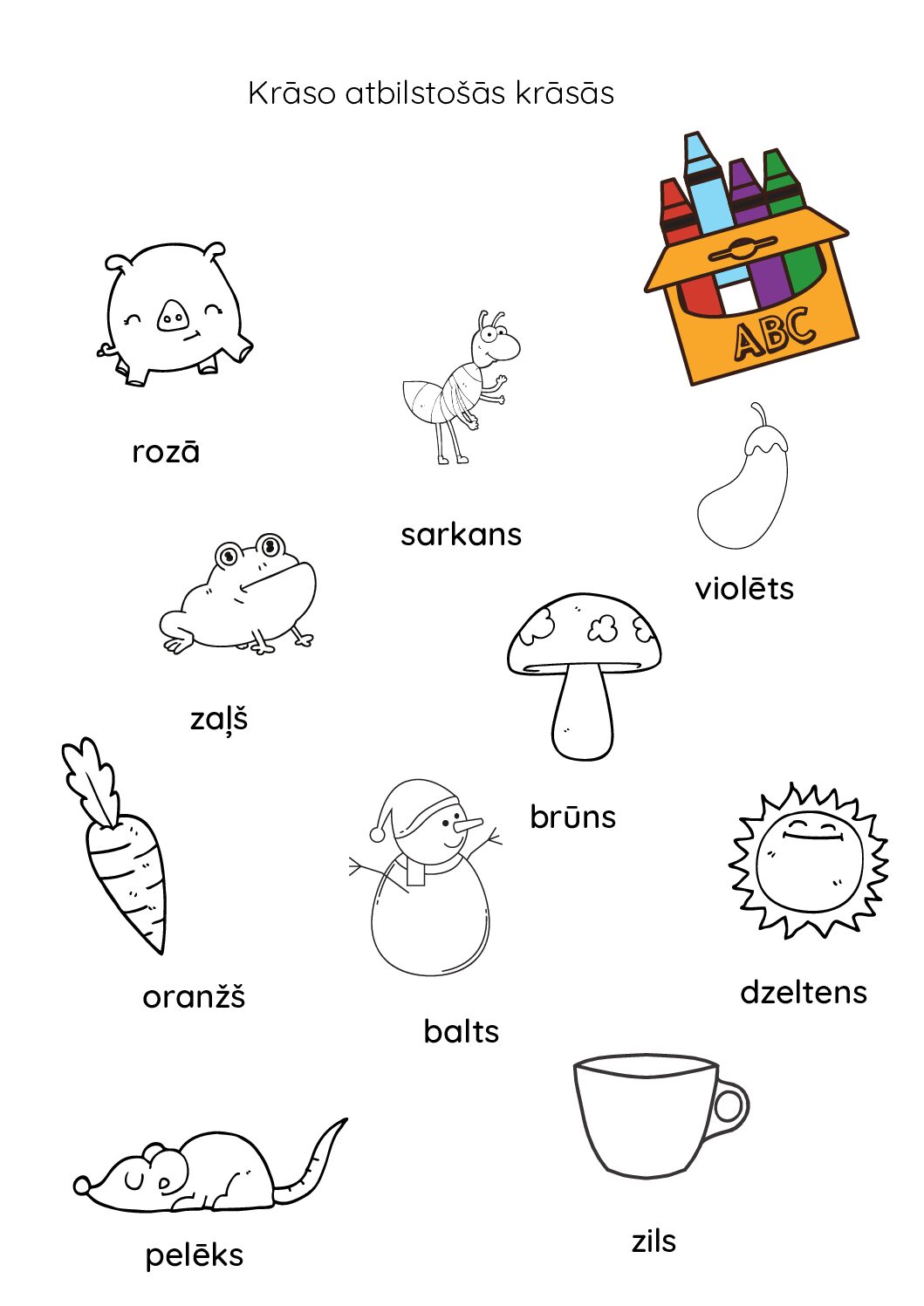 Krāso atbilstošā krāsā. Kopā 15 lapas.