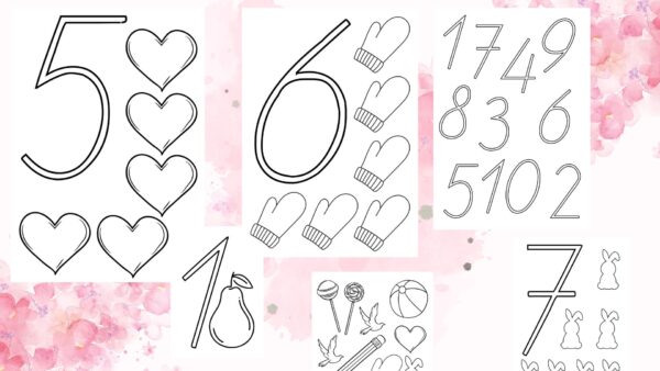 Krāsojamās lapas, cipari 1-10, visi cipari uz lapas.